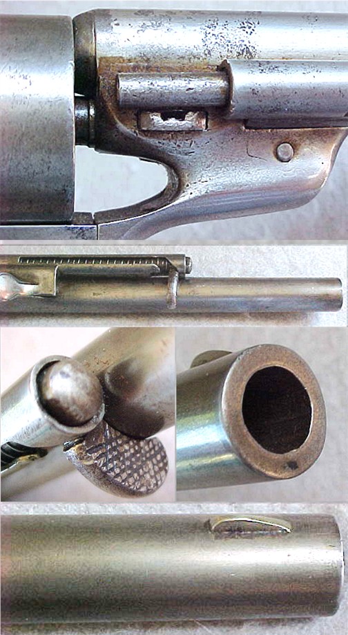 cylinder, trigger guard, barrel, extractor lug,