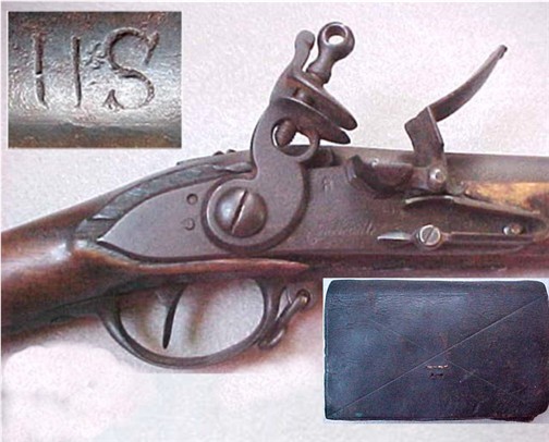 “US” SURCHARGED CHARLEVILLE FLINTLOCK MUSKET – A HISTORIC AMERICAN REVOLUTIONARY WAR LONG ARM - w/ THE ORIGINAL LEATHER CARTRIDGE BOX w/ WOODEN BLOCK  SOLD