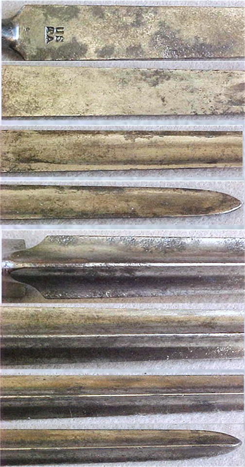 16 5/8” long blade is legibly marked “US” and with the