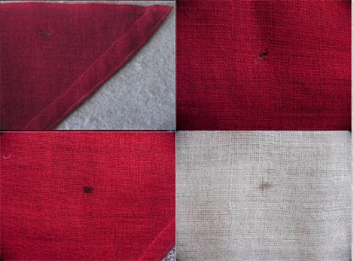 of a different red material more susceptible to fading