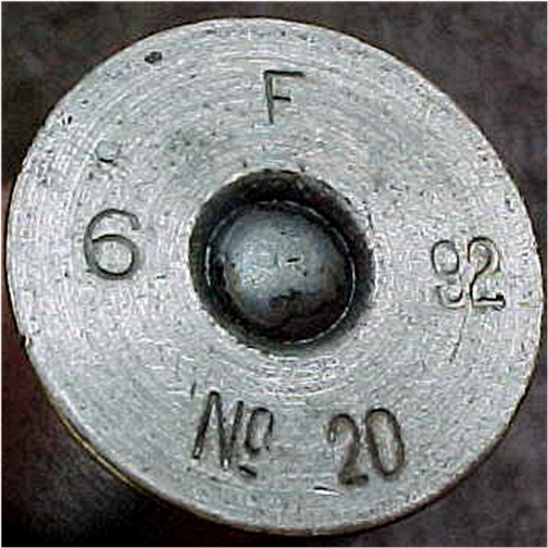 legibly headstamped “F 6 92 No. 20”. The tin plating