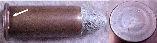 evidenced by the primer crimp immediately above the rim