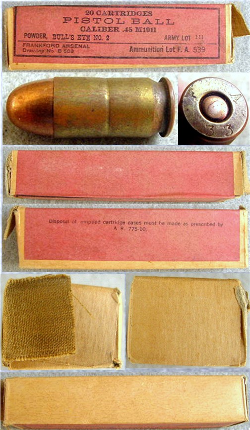 CARTRIDGES PISTOL BALL CALIBER .45 M1911”.