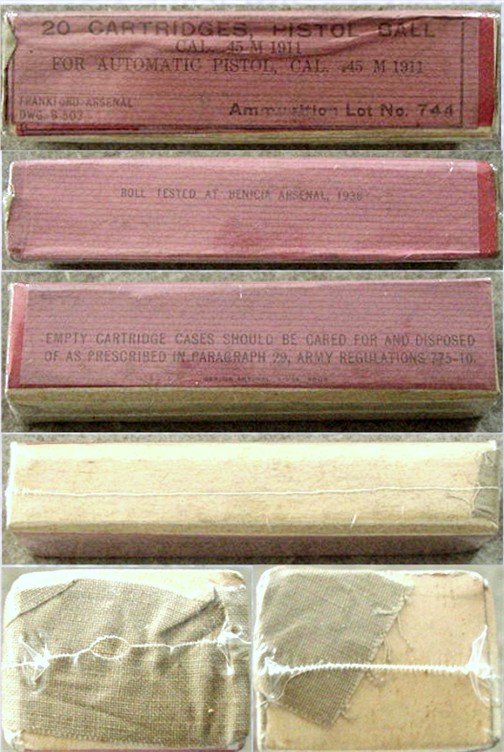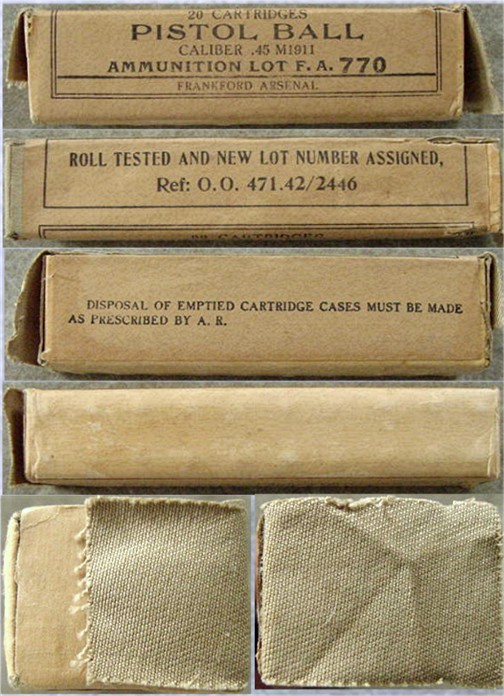 label, “20 Pistol Ball Cartridges, Caliber .45 M1911”.