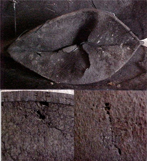 and the heavy black beaver fur felt still retains the