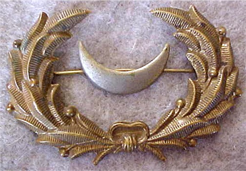 A white metal crescent with a separate brass wreath.