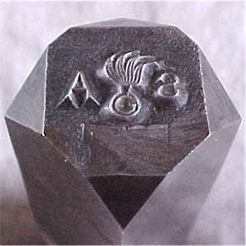 used to impress the stamp into the blade. The face of