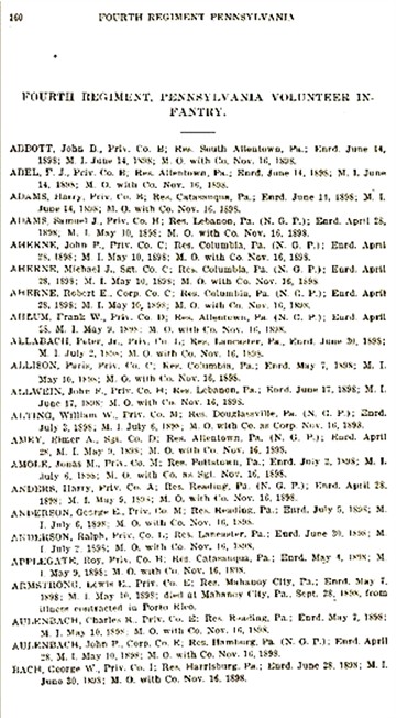 SPANISH AMERICAN WAR 4TH PENNSYLVANIA