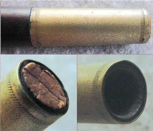 the ferrules appear to be brass, having a yellow cast to