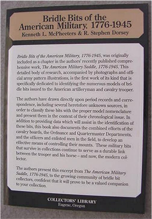 BRIDLE BITS OF THE AMERICAN MILITARY, 1776-1945 by